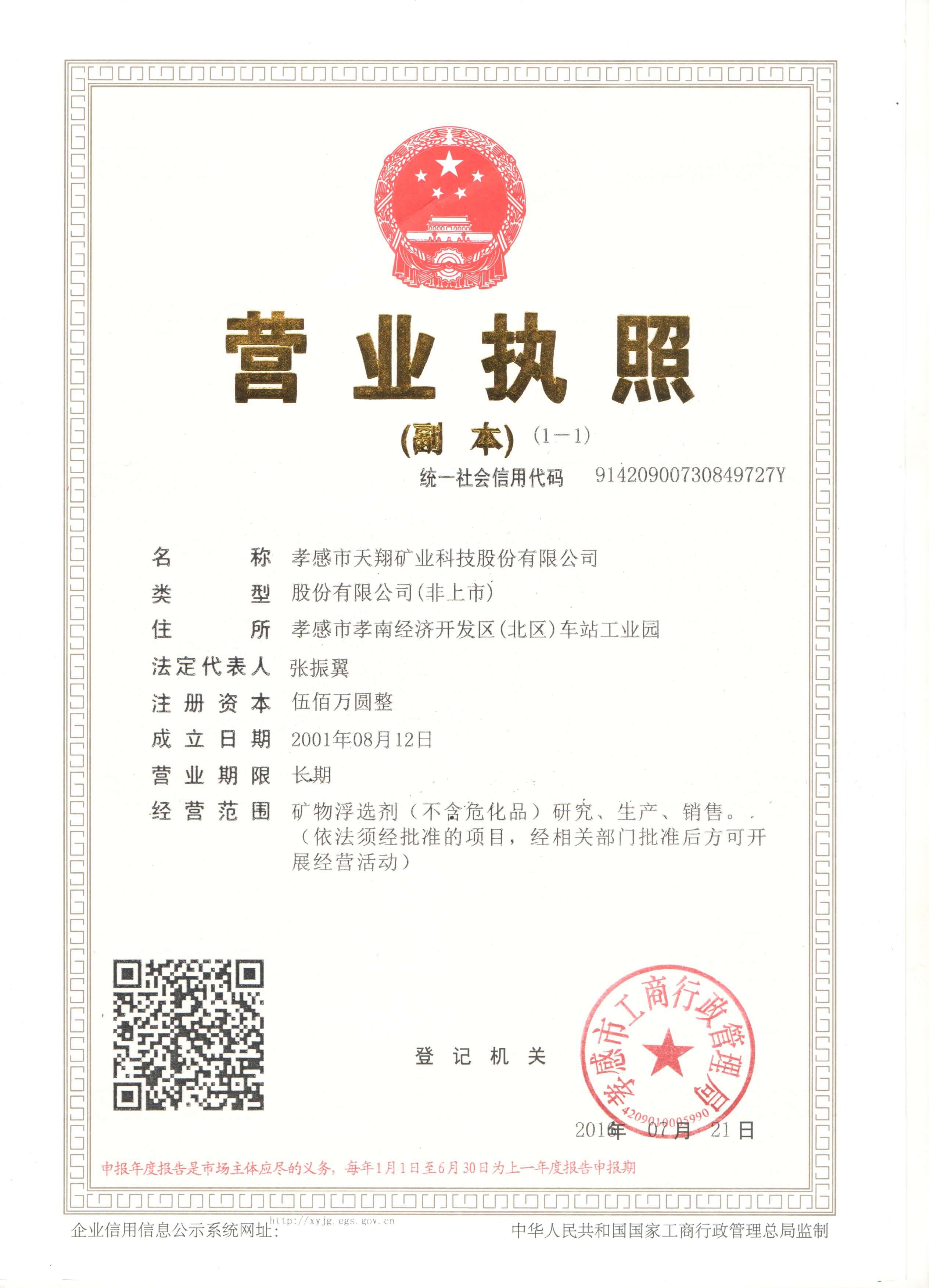孝感市天翔礦業(yè)科技股份有限公司是一家專業(yè)從事氧化礦浮選藥劑研究開發(fā)和生產(chǎn)的企業(yè)。成立于1996年,經(jīng)過20多年的研發(fā)與生產(chǎn)實(shí)踐,產(chǎn)品覆蓋磷礦、鋰礦、螢石礦、鎢礦、錫礦、鈦鐵礦、鋁土礦、稀土礦等多礦種的浮選藥劑,在業(yè)內(nèi)享有一定知名度。一份耕耘,一份收獲,多年的積累一定會產(chǎn)生行業(yè)認(rèn)可的高端產(chǎn)品。公司將會提供給礦山高效、有競爭力的產(chǎn)品,會與礦山企業(yè)一道,共同為行業(yè)發(fā)展作出優(yōu)秀的貢獻(xiàn)。